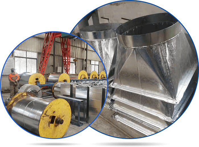 襄陽德達機電工程有限公司是襄陽暖通行業中的誠信建設企業。擁有先進的超五線風管生產線,全自動法蘭生產線,是風管加工行業設備齊全的廠家。可以生產0.5厚-1.5厚的鍍鋅風管,同時還可以生產不銹鋼風管和角鐵法蘭,不銹鋼法蘭等。 經營范圍:通風管道,各類風管加工,通風風道,排煙管道,鍍鋅風管,白鐵皮風管,白鐵皮加工,不銹鋼風管,螺旋風管,圓風管,矩形風管,共板法蘭風管,角鐵法蘭加工,廢氣風管,空調風管,空調新風管道,凈化風管,送新風風管,排風管,除塵風管,除塵管道,廢氣管道,油霧管道,排煙分管,煙塵凈化風管等……